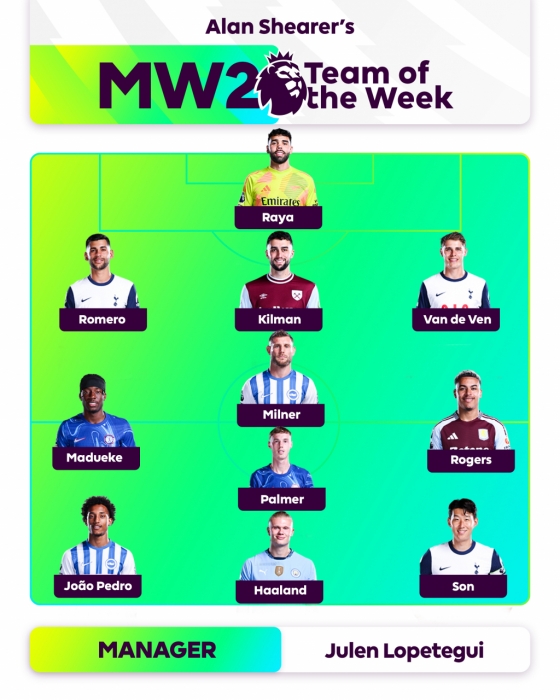 잉글랜드 프리미어리그(EPL) 사무국은 26일(한국시간) 공식 채널을 통해 "앨런 시어러가 이주의 팀을 선정했다"며 2라운드에서 빛난 11인을 공개했다. 손흥민은 왼쪽 공격수에 이름을 올리며 시어러의 극찬을 받았다.