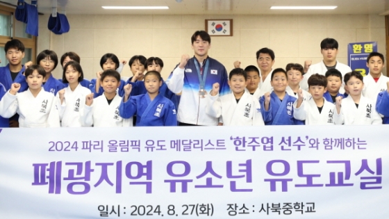 폐광지역 스포츠 인재육성 프로그램의 일환으로 진행된 이날 유도교실에는 2024 파리 올림픽 동메달리스트 한주엽 선수를 비롯한 하이원스포츠팀 유도선수들과 사북초·중학교 유도 꿈나무 23명 등이 참여했다.