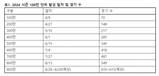 2024 신한 SOL뱅크 KBO 리그가 900만 관중 달성을 눈 앞에 두고 있다.