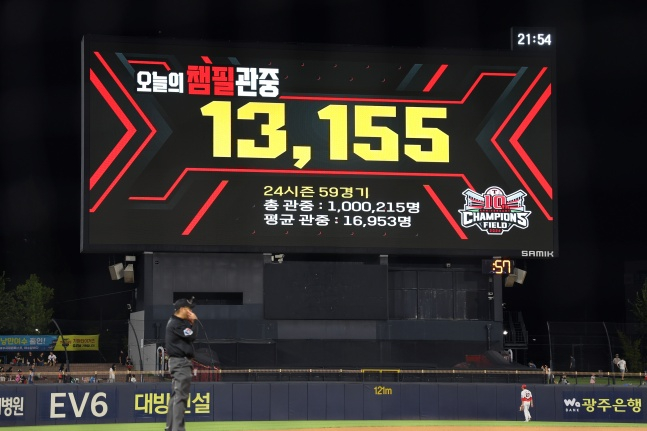 이는 2014년 광주-기아챔피언스필드가 개장한 이래 2번째이자 2017년 이후 7년 만의 100만 관중 돌파다. 또한 59경기 만에 100만 관중을 모으면서 2017년 70경기의 기록을 11경기 앞당겼다.