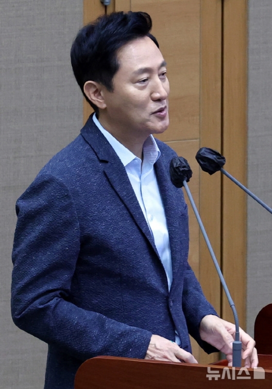 오세훈 서울시장이 29일 '제326회 시의회 임시회 제3차 본회의'에서 올림픽 유치와 관련한 이야기를 전하고 있다. /사진=뉴시스