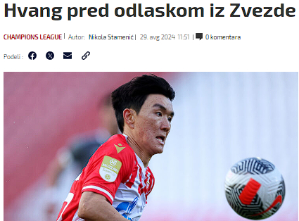 황인범도 이적 가능성에 대해 솔직한 답변을 남겼다. 세르비아 매체 '텔레그래프'에 따르면 그는 UEFA 챔피언스리그 PO 보되/글림트와 경기 후 믹스드존에서 "즈베즈다에 남는다는 걸 확신할 수는 없다"며 "이적시장은 3일 남았다. 끝날때까지 어떤 일이 일어날지 지켜보겠다"고 직접 말했다.