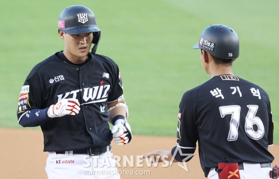 스포츠야구[포토] 배정대 '만루 찬스 놓칠 순 없쥬'발행 : 2024.08.29 ・ 19:14수정 : 2024.08.29 ・ 19:20잠실=김진경 대기자'2024 신한 SOL 뱅크 KBO리그' LG-KT전이 29일 서울 잠실야구장에서 열렸다.KT 배정대 1회초 2사 만루에서 2타점 적시타를 날리고 출루한 후 박기혁 코치의 환영을 받고 있다.<저작권자 © 스타뉴스, 무단전재 및 재배포 금지>오스틴오지환강백호LG유영찬로하스추천 기사김진경 대기자기자홈좋아요 스포츠-야구의 인기 급상승 뉴스스포츠-야구의 최신 뉴스