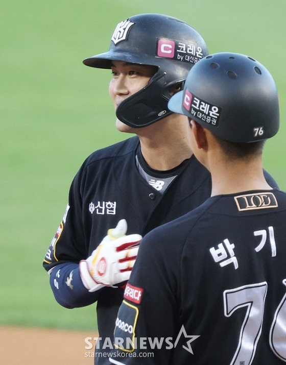 스포츠야구[포토] 배정대 '뒤늦게 가슴 두근두근'발행 : 2024.08.29 ・ 19:16수정 : 2024.08.29 ・ 19:20잠실=김진경 대기자'2024 신한 SOL 뱅크 KBO리그' LG-KT전이 29일 서울 잠실야구장에서 열렸다.KT 배정대 1회초 2사 만루에서 2타점 적시타를 날리고 출루한 후 박기혁 코치의 환영을 받고 있다.<저작권자 © 스타뉴스, 무단전재 및 재배포 금지>오스틴오지환강백호LG유영찬로하스추천 기사김진경 대기자기자홈좋아요 스포츠-야구의 인기 급상승 뉴스스포츠-야구의 최신 뉴스