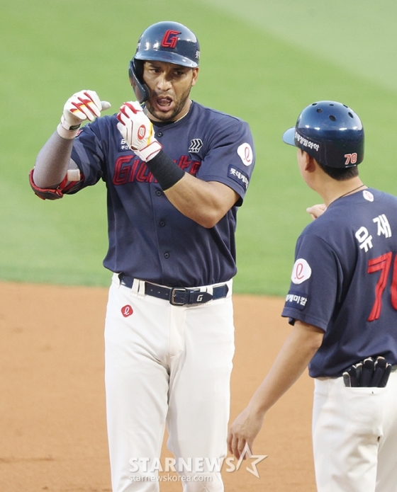사령탑의 고민을 눈치챈 것일까. 레이예스는 왜 자신이 타선의 에이스인지 증명했다. 두산 간판 투수 곽빈을 상대로도 한참 좋았을 때의 타격을 펼쳤다. 1회 1사 1루에서 곽빈의 체인지업을 받아쳐 우중간을 가르는 2루타로 선취 타점을 올렸다.