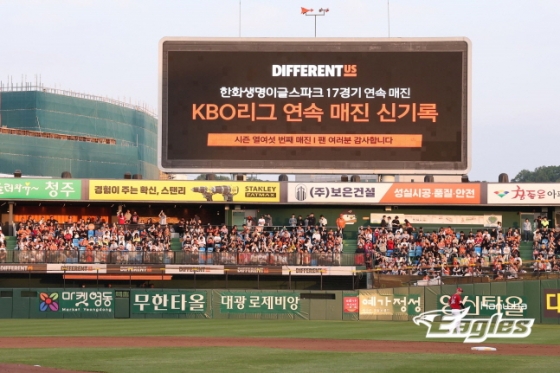 한화는 홈 17경기 연속 매진, 시즌 최다 경기 매진 등 신기록 행진을 이어가고 있다. 한화 관계자는 "올 시즌을 앞두고 류현진과 안치홍을 영입하면서 팬들의 기대가 높아진 게 저희 구단의 관중 증가 요인 중 하나라 생각한다. 또 김경문 감독 영입과 함께 현재까지 순위 싸움을 이어가면서 팬들께 기대감을 드리고 있는 부분도 있다고 본다"면서 "구단 자체 유튜브 채널인 이글스 TV(구독자 수 33만명으로 10개 구단 중 1위)를 통해 차별화된 콘텐츠를 선보이고 있다. 또 새로운 선수 개별 브랜드화 굿즈에도 팬들께서 뜨거운 관심을 보이고 있다"고 이야기했다.