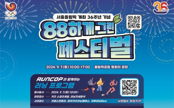 7일 올림픽공원에서는 '88하게 그린 페스티벌'이 개최된다. 서울올림픽 공식 마스코트인 '호돌이'를 디자인한 김현 작가와 소마미술관이 함께하는 호돌이 그리기 대회, 미니올림픽 및 플리마켓 등 서울올림픽을 추억하는 다채로운 행사가 열린다. 아울러, 유통기한이 지난 폐의약품을 수거하는 캠페인이 함께 진행돼 건강과 환경을 동시에 지키는 스포츠문화 행사가 될 예정이다.