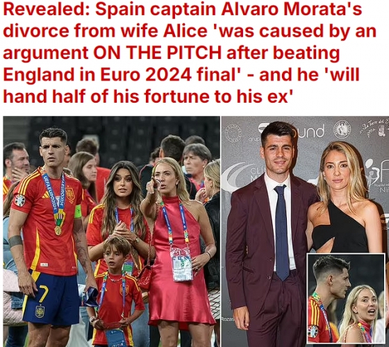 영국 매체 '데일리 메일'은 4일(한국시간) "스페인 주장 알바로 모라타(32·AC밀란)와 앨리스 캄펠로의 이혼 사유가 공개됐다"며 "유로 2024 결승전 이후 경기장에서 말다툼이 큰 문제였다. 모라타는 그의 전 재산 중 절반을 전 부인에게 줄 것"이라고 보도했다.