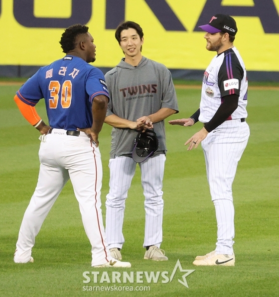 스포츠야구[포토] 오스틴 '워워~ 페라자 릴렉스'발행 : 2024.09.06 ・ 18:17수정 : 2024.09.06 ・ 19:09잠실=김진경 대기자'2024 신한 SOL 뱅크 KBO리그' LG-한화전이 6일 서울 잠실야구장에서 열렸다.LG 오스틴(오른쪽)이 경기 전 외야에서 한화 페라자와 만나 대화를 하고 있다.<저작권자 © 스타뉴스, 무단전재 및 재배포 금지>류현진배지현손주영프로야구한화LG추천 기사김진경 대기자기자홈좋아요 스포츠-야구의 인기 급상승 뉴스스포츠-야구의 최신 뉴스