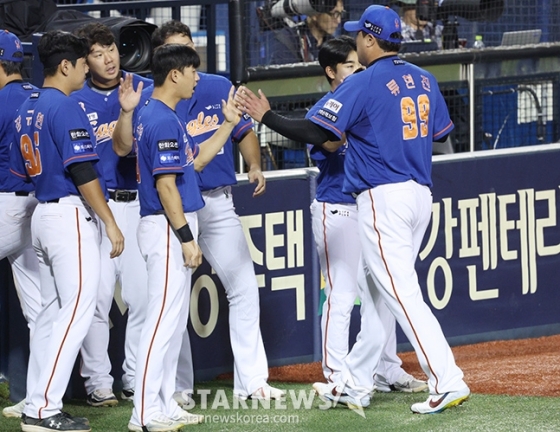 살얼음판 1점 리드 상황에서 타선이 힘을 보탰다. 1사에서 김태연이 빗맞은 안타로 출루했고 유영찬의 폭투 때 대주자 이원석이 2루에 진출했다. 이도윤의 볼넷에 이어 2사에서 황영묵의 1타점 쐐기 적시타가 터져나왔다.
