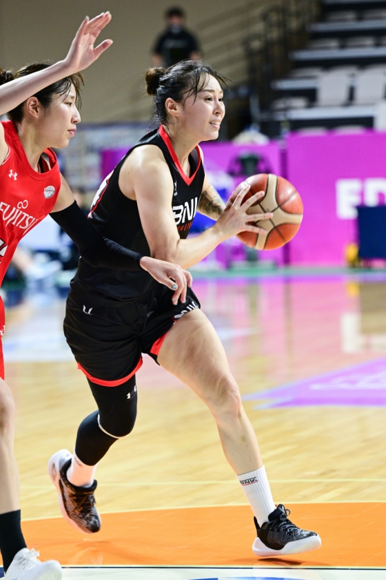 부산 BNK가 일본 W리그 통합 챔피언 후지쯔 레드웨이브에 박신자컵 결승 티켓을 내줬다.