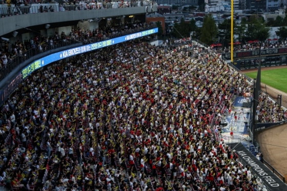 관중 관련 기록을 도장 깨기 하듯 하나씩 경신했다. 지난달 28일 광주 SSG 랜더스전에서는 홈 59경기째 만에 누적 관중 100만 215명으로 백만 관중을 돌파했다. 이는 2017년 한국시리즈 우승 시즌 이후 7년 만의 100만 관중이자, 종전 기록인 70경기 100만 관중을 11경기나 앞당긴 기록이었다.
