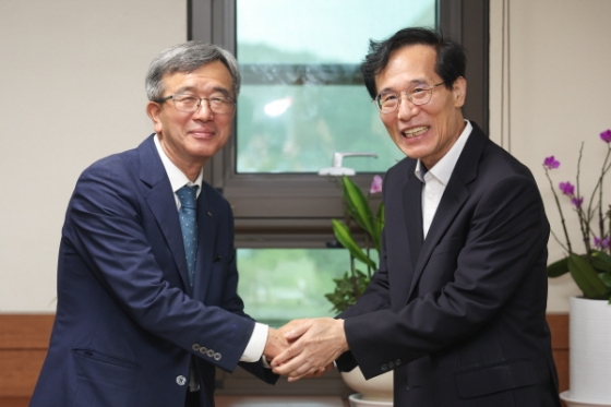 심오택 사행산업통합감독위원회 위원장(오른쪽)과 정기환 마사회 회장이 협력을 다짐하고 있다./사진제공=사행산업통합감독위원회