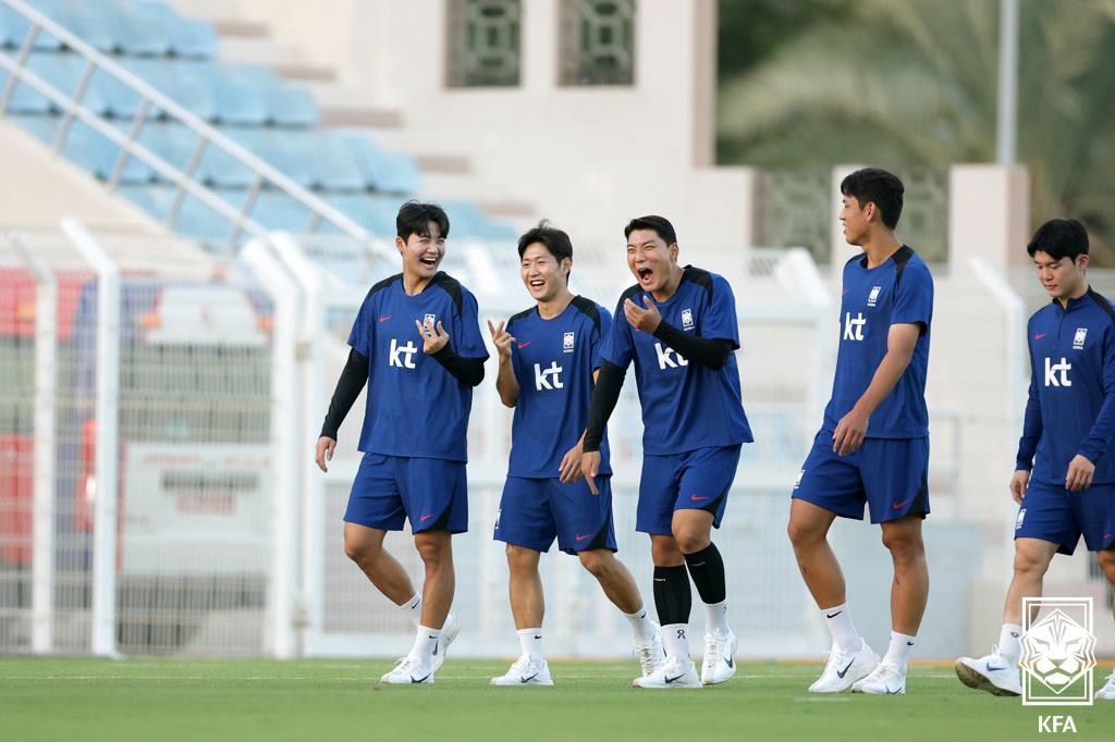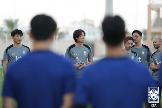 이강인(파리 생제르망)과 김민재(바이에른 뮌헨) 등 대표팀 선수들은 밝은 표정 속에서 훈련을 진행했다. 김영권과 정우영(이상 울산HD)도 발을 맞추며 몸을 풀었다. 러닝과 스트레칭, 기구를 이용한 조직력 훈련을 진행한 듯하다. 홍명보(55) 감독은 진지한 표정으로 훈련 전 선수들을 한데 모아 연설하기도 했다.