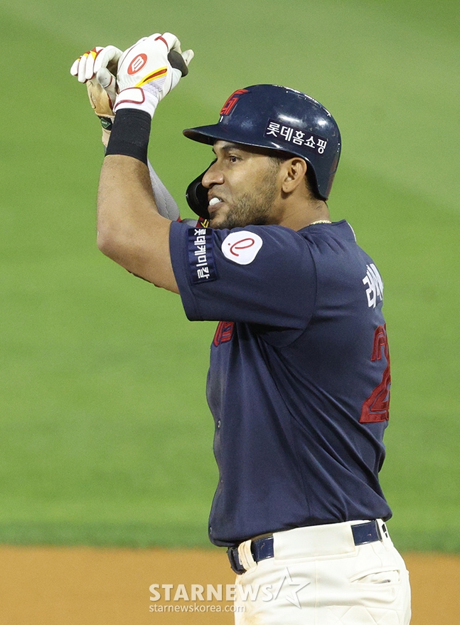 스포츠야구[포토] 레이예스 '10회 역전타는 껌이지 롯데껌'발행 : 2024.09.10 ・ 21:54수정 : 2024.09.10 ・ 22:49잠실=김진경 대기자'2024 신한 SOL 뱅크 KBO리그' LG-롯데전이 10일 서울 잠실야구장에서 열렸다.연장 10회초 2사 1,3루에서 롯데 레이예스가 역전 적시타를 날리고 출루한 후 세리머니를 선보이고 있다.<저작권자 © 스타뉴스, 무단전재 및 재배포 금지>lg롯데임찬규윌커슨부산갈매기손호영추천 기사김진경 대기자기자홈좋아요 스포츠-야구의 인기 급상승 뉴스스포츠-야구의 최신 뉴스