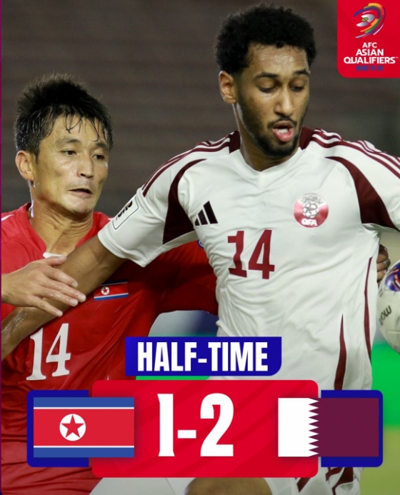 북한(110위)은 10일 라오스 비엔티안의 신국립경기장에서 열린 '2026 국제축구연맹(FIFA) 북중미 월드컵' 아시아 3차 예선 A조 2차전에서 카타르(34위)에 2-2로 비겼다. 지난 1차전에서 우즈베키스탄에 0-1로 패한 북한은 값진 3차 예선 첫 승점을 따냈다.