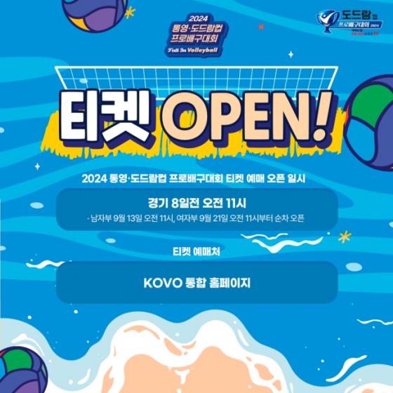 한국배구연맹은 "9월21일 개막하는 '2024 통영·도드람컵 프로배구대회'의 온라인 티켓 판매를 KOVO 통합 홈페이지에서 13일 오전 11시부터 시작한다"고 11일 밝혔다.