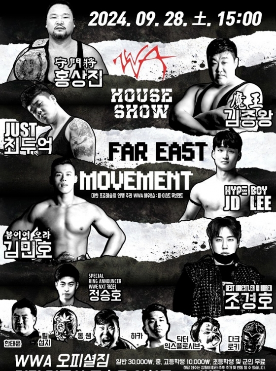 대한프로레슬링연맹은 오는 28일 오후 3시 경기 김포시 WWA 오피셜 짐에서 WWA 하우스 쇼 'FAR EAST MOVEMENT'를 개최한다고 11일 밝혔다.