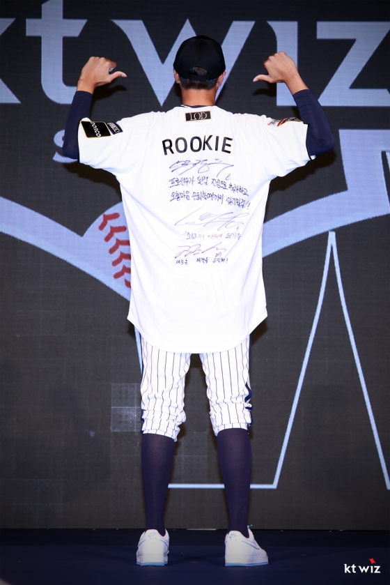 KT 주장 박경수, 부주장 배정대, 투수조장 고영표가 각각 적은 메시지였다. 박경수는 '프로 선수가 된 것을 진심으로 축하하고 오늘 마음 은퇴할 때까지 잊지 말길', 고영표는 '최고의 선수가 되기를', 배정대는 '새로운 시작을 응원해'라는 메시지를 각각 남겼다. KT 구단 관계자는 "이들의 지명을 선배들이 축하하고, 신인을 반갑게 맞이하는 의미에서 유니폼 후면에 사인과 함께 자필 메시지를 작성했다"고 설명했다.
