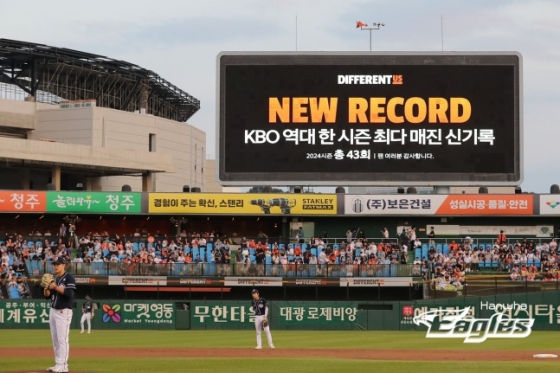 올 시즌 한화는 이날까지 총 66차례의 홈 경기에서 43회의 매진을 달성하며 한 시즌 최다 매진 기록도 다시 썼다. 또한 지난해 10월 16일 롯데 자이언츠와 시즌 최종전부터 올해 5월 1일 SSG 랜더스전까지 17연속 홈 경기 매진을 기록해 1995년 삼성의 12경기 연속 매진을 넘는 KBO리그 홈 경기 연속 매진 신기록도 수립했다.