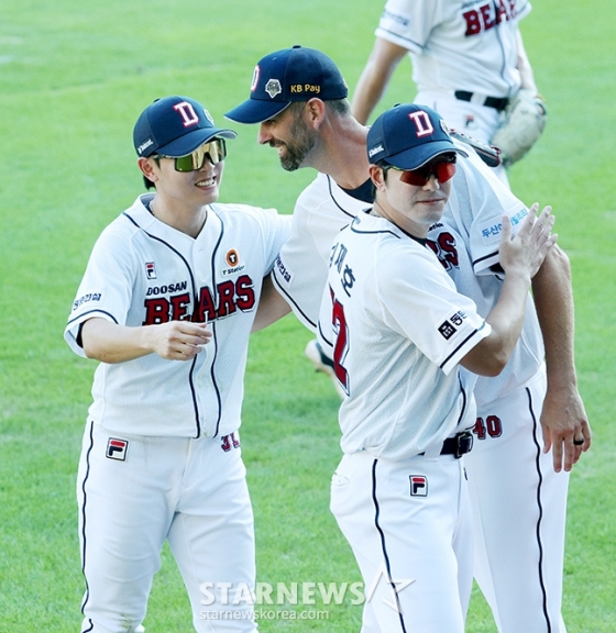 1회초 수비가 끝나고는 더그아웃에서 나와 현역 시절과 같이 야수들을 하나하나 독려하는 모습을 재현했다. 특히 추가 실점 위기를 지워내는 환상적인 다이빙 캐치를 펼친 정수빈을 환하게 웃으며 맞이했다. 마치 과거 현역 시절을 떠올리게 만들며 두산 팬들의 가슴을 뭉클하게 만드는 장면이었다.