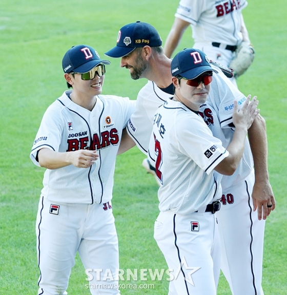 [포토] 니퍼트 '호수비 펼친 정수빈에 아빠미소'