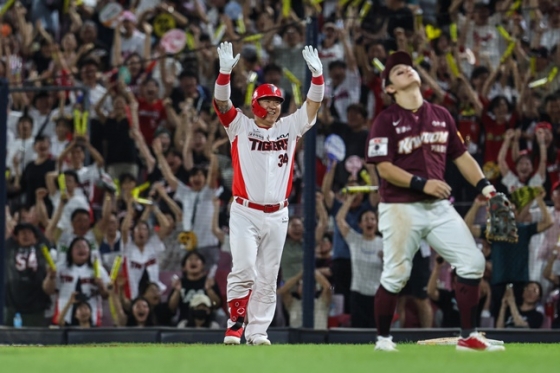 그래도 1위 팀은 달랐다. KIA는 9회 말 등판한 키움 마무리 주승우를 상대로 소크라테스 브리토와 최원준이 연속 안타를 터트렸고, 김도영의 몸에 맞는 볼까지 나오며 무사 만루가 됐다. 여기서 최형우가 친 타구가 1~2루 사이를 절묘하게 지나가며 안타가 됐고, 2루 주자까지 홈을 밟으며 경기에 마침표를 찍었다.