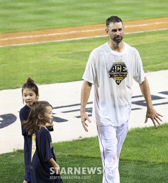 두산 니퍼트가 선수 생활을 마친 후 7년 만에 야구장에 돌아와 공식 은퇴식을 했다.