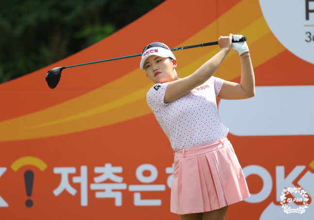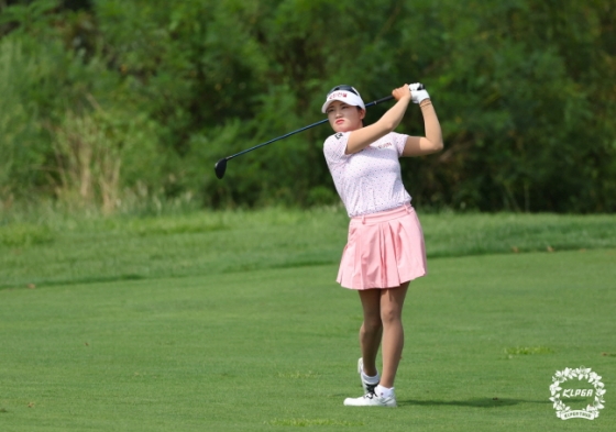 후반 시작과 함께 10번 홀(파5)과 11번 홀(파4) 연속 버디를 잡아냈다. 10번 홀엔 완벽한 아이언샷으로 탭인 버디를, 11번 홀에선 정교한 퍼트로 미소를 지었다. 14번 홀에서도 정교한 아이언샷을 바탕으로 한 타를 줄인 노승희는 15번 홀(이상 파4) 그린 주변 러프에 떨어진 세컨드샷을 환상적인 칩인 버디로 연결하며 단독 선두로 떠올랐다.