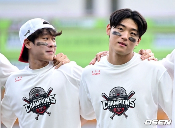 김도영은 "아직 (우승이) 실감 안 나는데 주위 형들 반응 보니까 정말 대단한 거라 느꼈다. 신기하고 나도 기분 좋다"며 "형들 반응이 정말 처음 보는 모습이었다. 기뻐하면서도 벅차 했다. 그런 모습이 신기했다. 그중에서도 (박)찬호 형이 제일 기억 난다. 찬호 형이 경기 끝나기 전부터 계속 눈물 날 것 같다고 했다. 나보고는 '눈물 나면 같이 울어줘야 해?'라고 했다. 그런데 진짜 울었다. 그걸 보고 '아 우승이 정말 어려운 거구나' 실감했다"고 설명했다.
