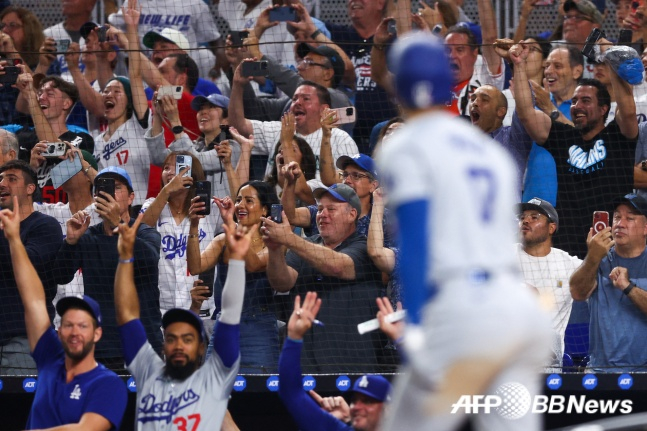 홈으로 돌아온 오타니에게 마이애미 관중들도 박수를 보냈고 프리먼은 90도 인사로 경의를 표했다. 오타니 역시 커튼콜에 다시 한 번 더그아웃에서 나와 환호에 답했다.