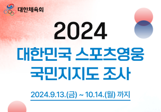 2024년 대한민국 스포츠영웅 국민지지도 조사는 오는 10월 14일까지 대한체육회 홈페이지를 통해 국민 누구나 참여할 수 있으며, 참여자 중 500명에게는 추첨을 통해 소정의 기프티콘을 지급할 예정이다.