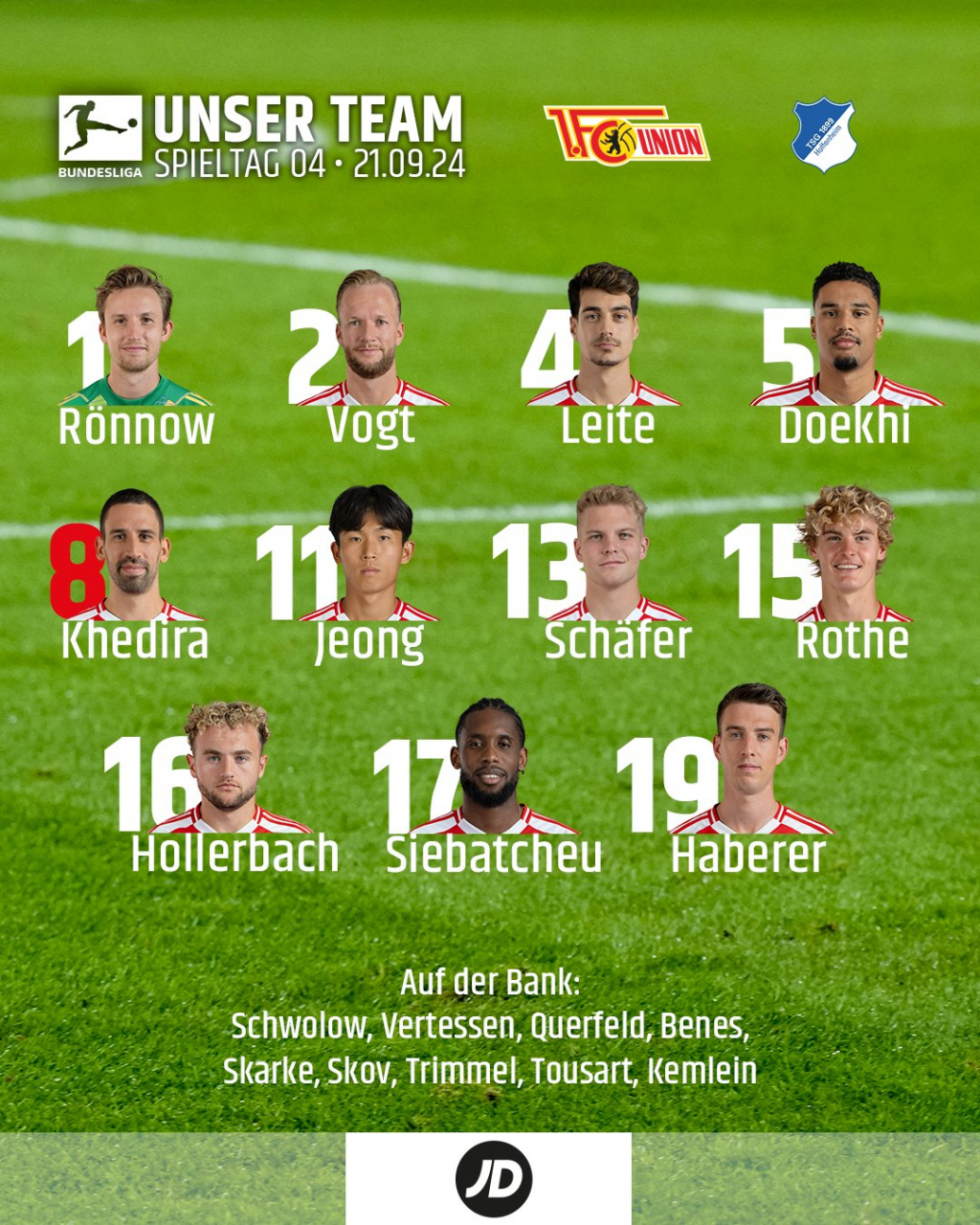 베를린은 21일(한국시간) 독일 베를린의 스타디온 안 데어 알텐 푀르스테라이에서 열린 2024~2025시즌 독일 분데스리가 4라운드에서 호펜하임을 2-1로 꺾었다.