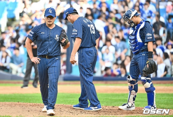 플레이오프(PO) 직행 확정까지 남은 아웃카운트는 단 3개. 9-2로 크게 앞선 상황에서 마운드에 '끝판대장' 오승환(42·삼성 라이온즈)이 등판했다. 그러나 엿새를 쉬고 등판하고도 오승환은 크게 흔들렸다. PO 직행의 기쁨을 마음껏 누릴 수 없는 삼성이다.