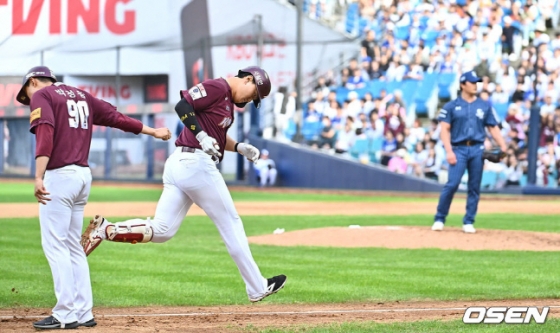 이어 송성문과 8구 풀카운트 승부를 펼친 오승환은 볼넷을 내주며 만루를 자초했고 김혜성에게 던진 몸쪽 높은 공이 2타점 중전 적시타로 연결됐다. 이어 최주환에게도 내야 안타를 맞고 1점을 더 내준 오승환은 김건희에게 던진 슬라이더가 몰리며 스리런 홈런을 허용했다.