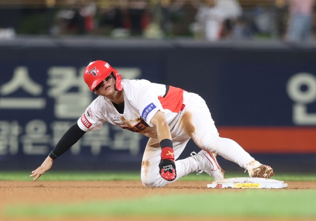 지난 15일 광주 키움전 이후 4경기 만에 나온 시즌 40호 도루였다. 김도영은 바뀐 투수 육선엽을 상대로 볼 4개를 골라내 출루했다. 이어진 윤도현의 타석에서 초구에 2루 도루를 감행했고 다소 여유있게 세이프 판정을 받아냈다.