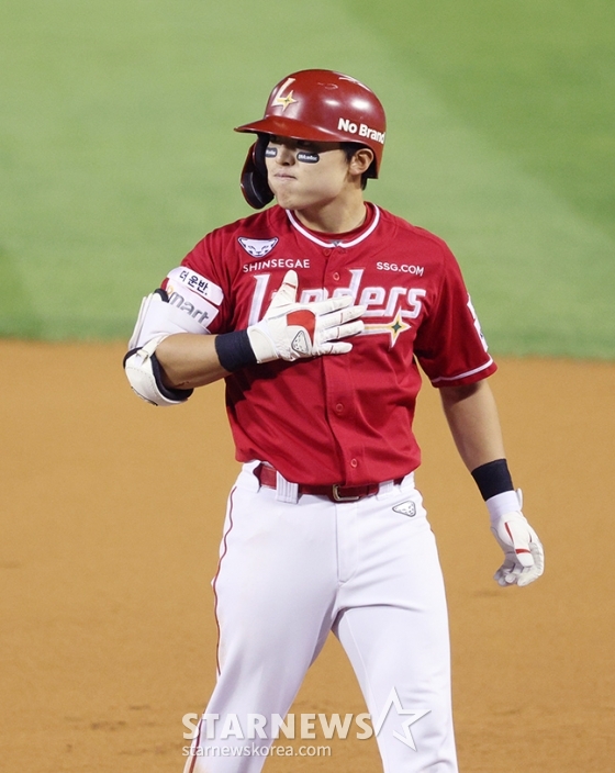 스포츠야구[포토] 정준재 '내가 누구?'발행 : 2024.09.23 ・ 19:28잠실=김진경 대기자'2024 신한 SOL 뱅크 KBO리그' 두산-SSG전이 23일 서울 잠실야구장에서 열렸다.SSG 정준재가 3회초 무사 2루에서 1타점 적시타를 날리고 출루한 후 세리머니를 선보이고 있다.<저작권자 © 스타뉴스, 무단전재 및 재배포 금지>두사SSG최원준송영진이승엽최정정수빈추천 기사김진경 대기자기자홈좋아요 스포츠-야구의 인기 급상승 뉴스스포츠-야구의 최신 뉴스