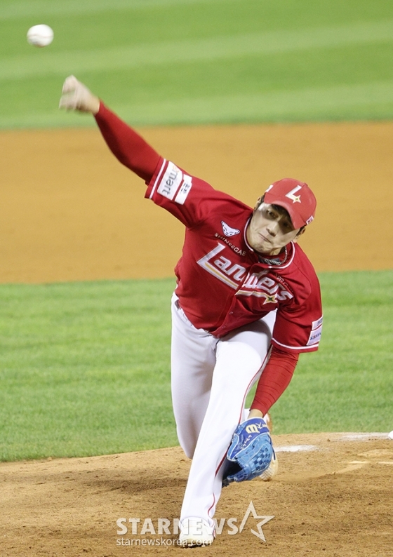 5회말 구원 등판한 SSG 서진용이 역투하고 있다.