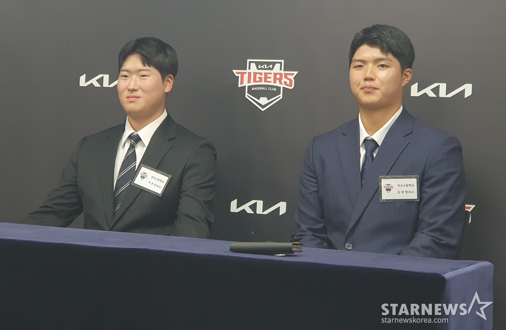 상위 순번으로 뽑힌 만큼 신인왕에 대한 질문도 당찼다. 김태형은 "슬라이더가 가장 자신 있다. 프로는 체계적으로 운동한다고 들었는데 그 훈련을 받고 내가 얼마나 더 성장할지 궁금하다"며 "김도영 선배를 상대하고 싶었는데 같은 팀이 됐다. 이제는 덕수고 선배님인 롯데 나승엽 선수를 상대하고 싶다. 압도적인 실력으로 신인왕을 받을 수 있도록 하겠다"고 포부를 밝혔다.