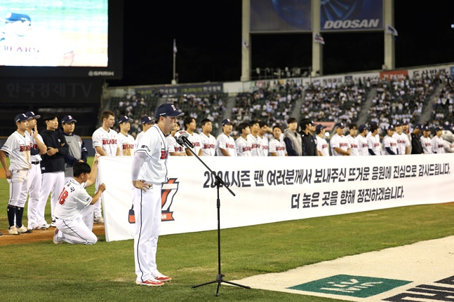 팬들은 경기장을 떠나지 않았고 선수단은 팬들 앞에 서서 한 명씩 팬들에 대한 감사함을 나타내는 동시에 가을야구에 대한 각오를 나타냈다. 두산 구단은 화려한 레이저쇼와 응원가 릴레이로 여흥을 즐겼다. 가을야구 진출에도 야유로 인해 다소 가라앉는 듯한 지난해와 같은 분위기는 찾아볼 수 없었다.