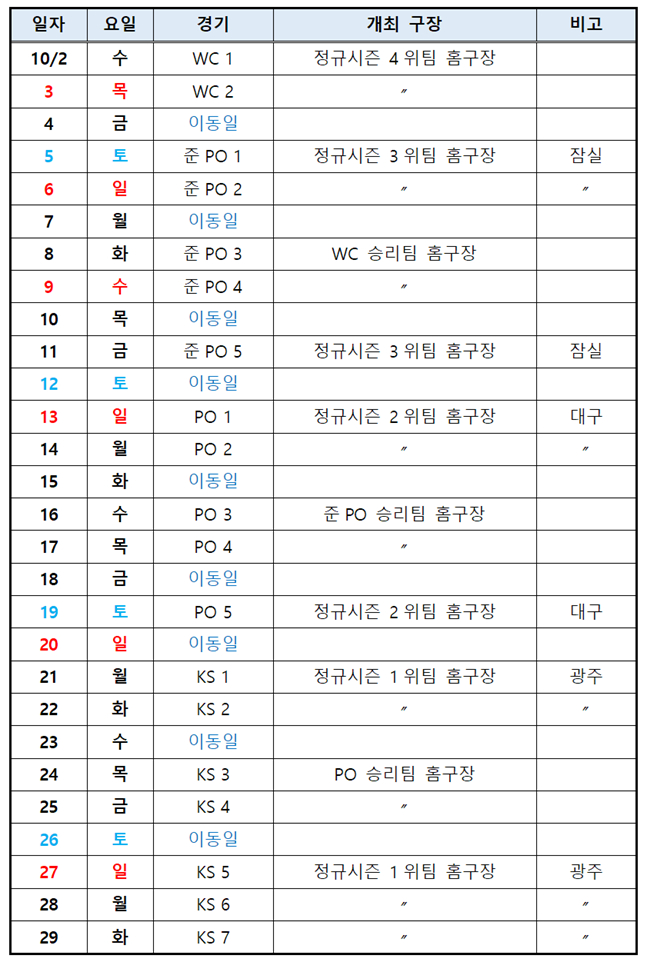 '가을축제' KBO 포스트시즌 일정이 확정됐다. 오는 10월 2일 그 막이 오른다.