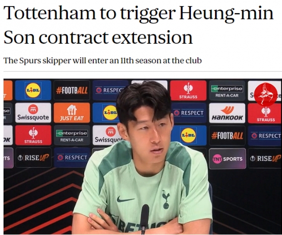 영국 매체 '더 스탠다드'는 26일(한국시간) "토트넘은 손흥민과 계약 연장 옵션을 이행한다. 토트넘 주장(손흥민)은 구단에서 11번째 시즌을 맞이할 것"이라며 "손흥민은 2024~2025시즌이 끝나면 계약이 만료된다. 구단은 계약을 12개월 더 연장할 수 있는 옵션이 있다. 이를 행사할 것"이라고 보도했다. 해당 소식은 토트넘 전담기자로 알려진 댄 킬패트릭이 전했다.