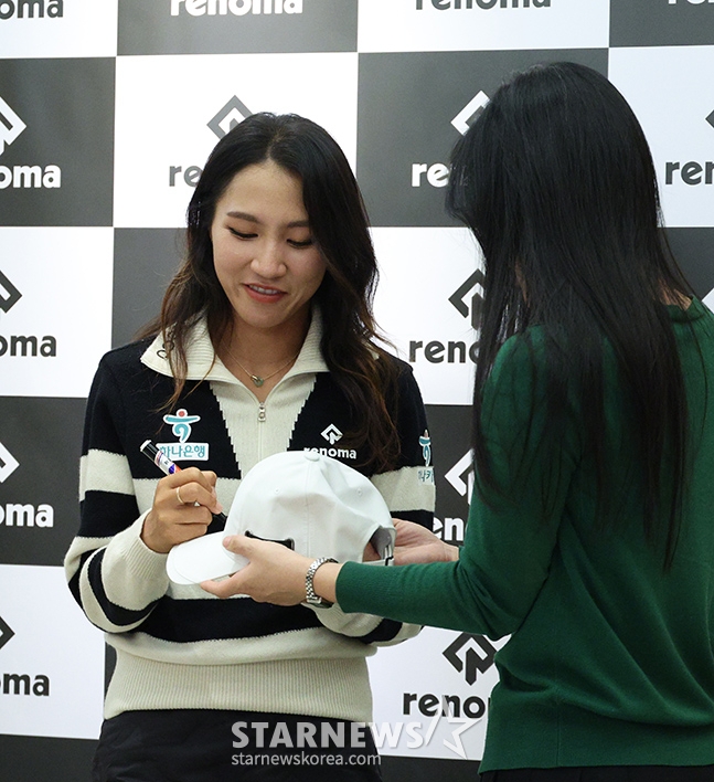 리디아 고가 사인회에서 정성스럽게 사인하고 있다.