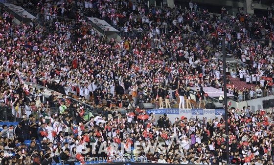 스포츠야구[포토] 컬러풀 KT '수원성에서 왔다'발행 : 2024.10.02 ・ 19:27잠실=김진경 대기자'2024 KBO 포스트시즌 와일드카드 결정1차전' 두산-KT전이 2일 서울 잠실야구장에서 열렸다.KT 팬들이 열띤 응원을 펼치고 있다.<저작권자 © 스타뉴스, 무단전재 및 재배포 금지>두산두산베어스가울야구포스트시즌이승엽양석환추천 기사김진경 대기자기자홈좋아요 스포츠-야구의 인기 급상승 뉴스스포츠-야구의 최신 뉴스