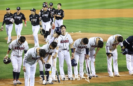 스포츠야구[포토] 김재호 '내일은 이길게요'발행 : 2024.10.02 ・ 21:59잠실=김진경 대기자'2024 KBO 포스트시즌 와일드카드 결정1차전' 두산-KT전이 2일 서울 잠실야구장에서 열렸다.두산에 4-0 완승을 거둔 KT 선수들이 마운드에 모여 기쁨을 나누고 있다. 두산 선수들은 허무한 표정으로 팬들에 인사하고 있다.<저작권자 © 스타뉴스, 무단전재 및 재배포 금지>두산두산베어스가울야구포스트시즌이승엽양석환추천 기사김진경 대기자기자홈좋아요 스포츠-야구의 인기 급상승 뉴스스포츠-야구의 최신 뉴스
