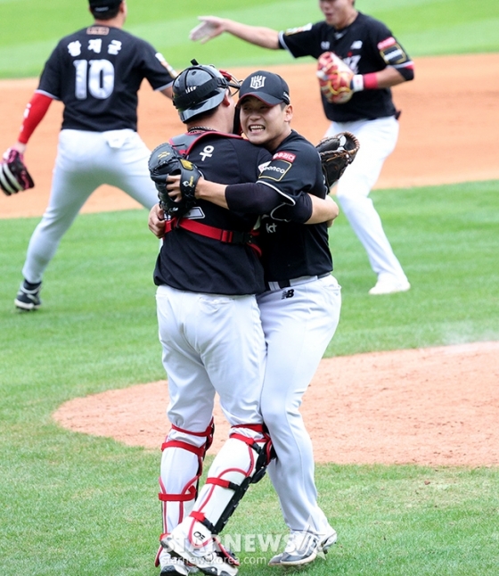 2차전 승리 후 스타뉴스와 만난 장성우는 "볼넷 없이 스트라이크 존을 적극적으로 공략한 게 좋았던 것 같다"며 "투수들이 변화구를 효율적으로 잘 던져줬다. 그래서 직구보다는 변화구 비율이 많았다"고 말했다.