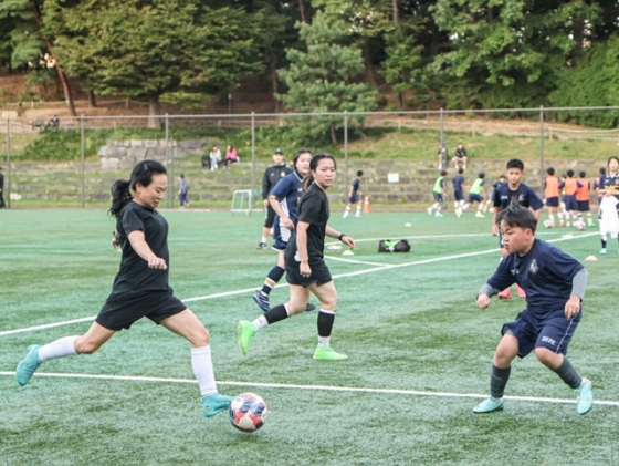 특히 팀 내 공격수를 맡고 있는 박은숙 씨는 U-12팀 주장 이한빈 군과 흥미진진한 모자 대결을 펼쳐 눈길을 끌었다.