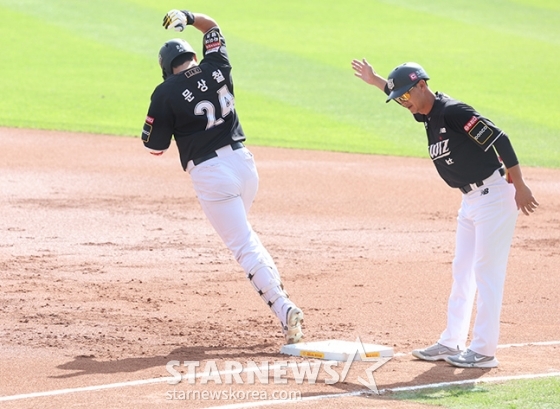 스포츠야구[포토] 문상철 '땡큐 코치님'발행 : 2024.10.05 ・ 14:38잠실=김진경 대기자'2024 KBO 포스트시즌 준플레이오프 1차전' LG-KT전이 5일 서울 잠실야구장에서 열렸다.KT 문상철이 2회초 무사 1루에서 선제 좌월 2점 홈런을 날린 후 박기혁 코치의 축하흫 받으며 다이아몬드를 돌고 있다.<저작권자 © 스타뉴스, 무단전재 및 재배포 금지>쿠에바스시구승요승리요정준플레이오프준PO추천 기사김진경 대기자기자홈좋아요 스포츠-야구의 인기 급상승 뉴스스포츠-야구의 최신 뉴스