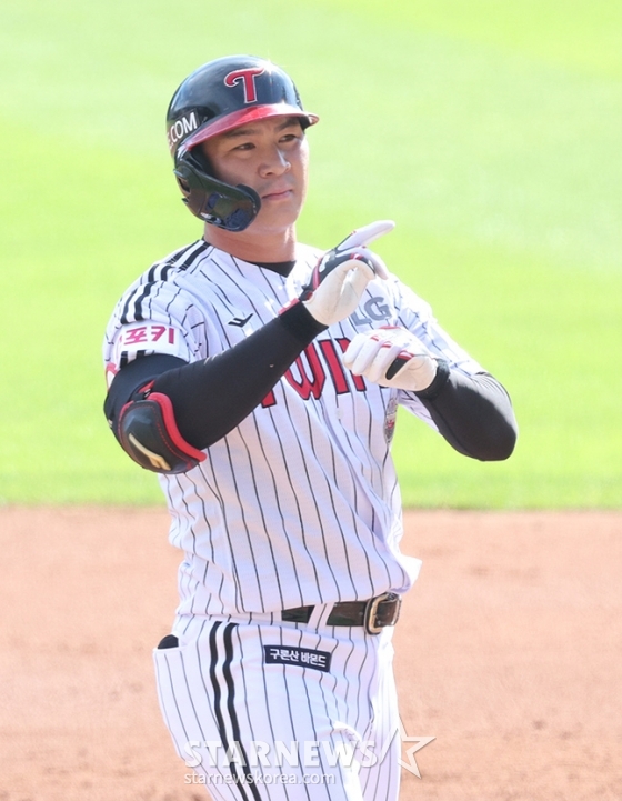 스포츠야구[포토] 오지환 '오씨 형제가 일낸다'발행 : 2024.10.05 ・ 15:24잠실=김진경 대기자'2024 KBO 포스트시즌 준플레이오프 1차전' LG-KT전이 5일 서울 잠실야구장에서 열렸다.LG 오지환이 4회말21사 1루에서 중전 안타를 날리고 출루한 후 세리머니를 선보이고 있다.<저작권자 © 스타뉴스, 무단전재 및 재배포 금지>쿠에바스시구승요승리요정준플레이오프준PO추천 기사김진경 대기자기자홈좋아요 스포츠-야구의 인기 급상승 뉴스스포츠-야구의 최신 뉴스
