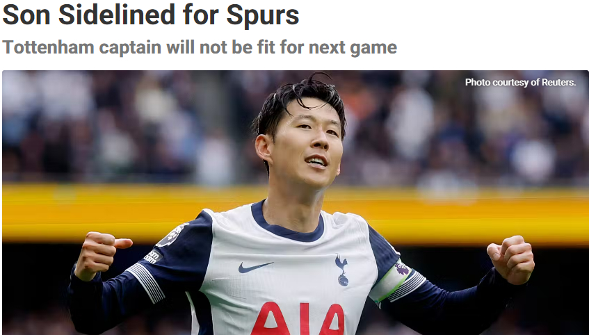 2024~2025시즌 초반 손흥민의 몸에 유독 무리가 많이 온 분위기다. 이미 두 경기에 결장한 손흥민은 오는 브라이튼전까지 총 세 경기에서 휴식을 취할 전망이다.